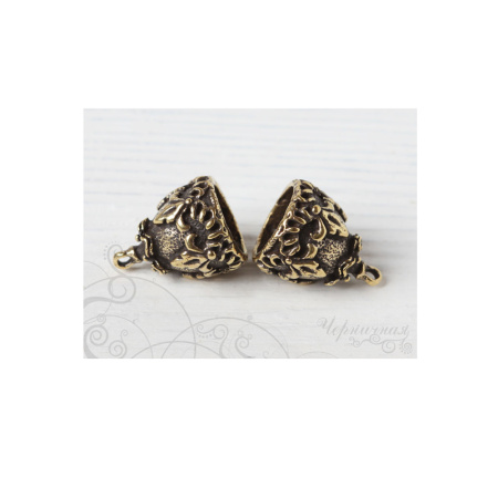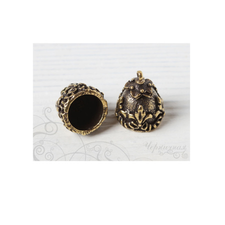 Авторская фурнитура Анны Черных - концевик для вклейки шнуров или лент. Размер: 16,7 х 21,2 мм, внутренний диаметр: 12,4 мм, глубина примерно 13,4 мм, петля: 1,3 мм. Материал: античная латунь. Производство: Россия. Цена указана за 1 шт.