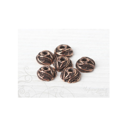 Авторская фурнитура Анны Черных - чашечка для бусины. Размер: 9,1 х 4,1 мм, внутренний диаметр примерно 6,4 мм, отверстие: 1,7-1,9 мм. Материал: античная бронза. Производство: Россия. Цена указана за 1 шт.