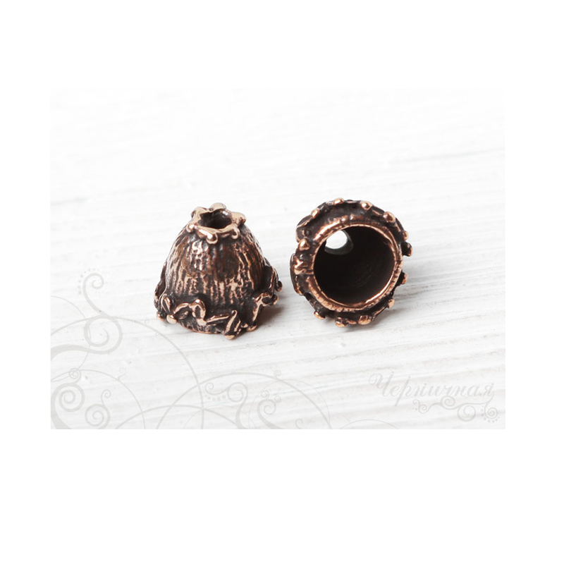 Авторская фурнитура Анны Черных - концевик для вклейки шнуров или лент. Размер: 12,5 х 11,4 мм, внутренний диаметр примерно 7,6 мм, отверстие: 2,2 мм. Материал: античная бронза. Производство: Россия. Цена указана за 1 шт.