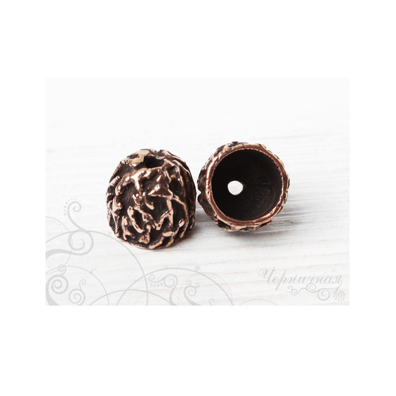 Авторская фурнитура Анны Черных - концевик для вклейки шнуров или лент. Размер: 14,1 х 13,2 мм, внутренний диаметр примерно 10,3 мм, отверстие: 2,3 мм. Материал: античная бронза. Производство: Россия. Цена указана за 1 шт.