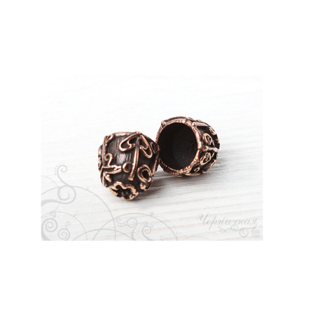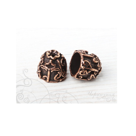 Авторская фурнитура Анны Черных - концевик для вклейки шнуров или лент. Размер: 14,8 х 13,5 мм, внутренний диаметр примерно 10,5 мм, отверстие: 2,2 мм. Материал: античная бронза. Производство: Россия. Цена указана за 1 шт.
