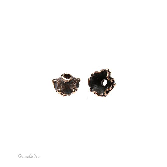 Авторская фурнитура Анны Черных - чашечка для бусины. Размер: 10 х 6,7 мм, отверстие: 2,3 мм, максимальный внутренний диаметр: 6,6 мм. Материал: античная бронза. Производство: Россия. Цена указана за 1 шт.