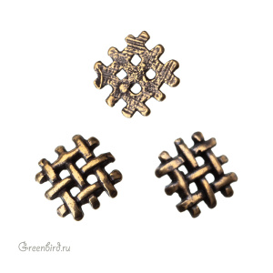 Авторская фурнитура Анны Черных - коннектор. Размер: 11,6 х 11,1 мм, толщина: 2,4 мм, отверстия примерно 1,2 мм. Материал: античная латунь. Производство: Россия. Цена указана за 1 шт.