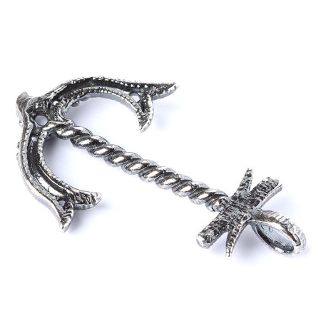 Авторская фурнитура Анны Черных - центральный элемент в форме якоря с петлей сверху и дополнительными маленькими отверстиями. Ширина: 29,5 мм, высота с петлей: 46,8 мм, внутренний размер петли: 4,3 х 5,7 мм, отверстия примерно 1,3 мм. Материал: латунь, покрытие: античное серебро. Производство: Россия. Цена указана за 1 шт.