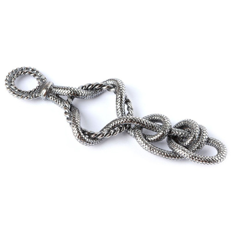 Авторская фурнитура Анны Черных - крупный центральный элемент в форме перекрученного каната, с одним крупным кольцом. Может использоваться в качестве подвески. Ширина: 29,2 мм, высота с кольцом: 80 мм, внутренний размер центрального отверстия примерно 18,5 х 16 мм, внутренний диаметр кольца: 7,5 мм. Материал: латунь, покрытие: античное серебро. Производство: Россия. Цена указана за 1 шт.