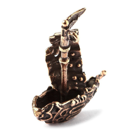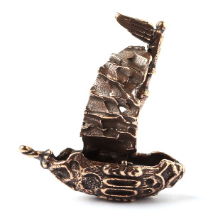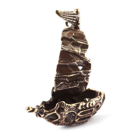 Авторская фурнитура Анны Черных - объемный центральный элемент в форме стилизованного парусного корабля, с одним кольцом для крепления. Может использоваться в качестве подвески. Длина: 31,6 мм, высота: 34,3, общая ширина (с парусом): 14,4 мм, толщина мачты: 1,6-3 мм, внутренний диаметр колечка примерно 1,5 мм. Материал: античная бронза. Производство: Россия. Цена указана за 1 шт.