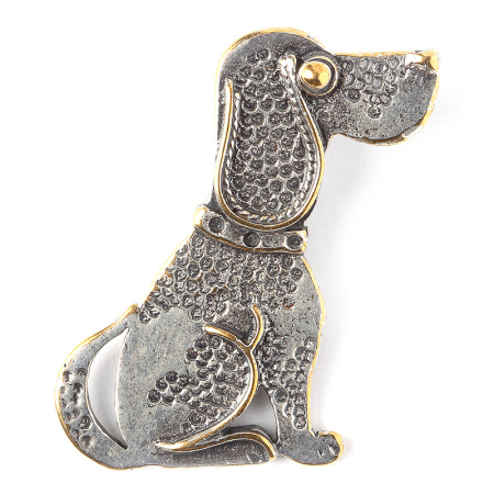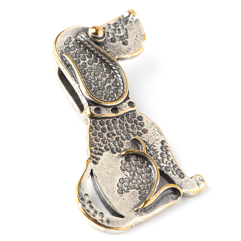 Авторская фурнитура Анны Черных - подвеска односторонняя в виде собачки с петлей на обороте. Подходит для надевания на ленту или плоский шнур. Размер: 22,7 х 28,4 мм, петля: 7,9 х 2,3 мм. Материал: латунь, покрытие: винтаж (серебро). Производство: Россия. Цена указана за 1 шт.