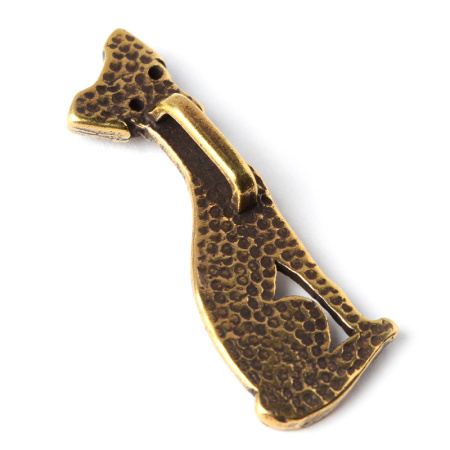 Авторская фурнитура Анны Черных - подвеска односторонняя в виде собачки, с крепежной петлей на обороте. Подходит для закрепления на ленте или плоском шнурке. Размер: 12,2 х 33 мм, петля: 2,2 х 7,6 мм. Материал: античная латунь. Производство: Россия. Цена указана за 1 шт.