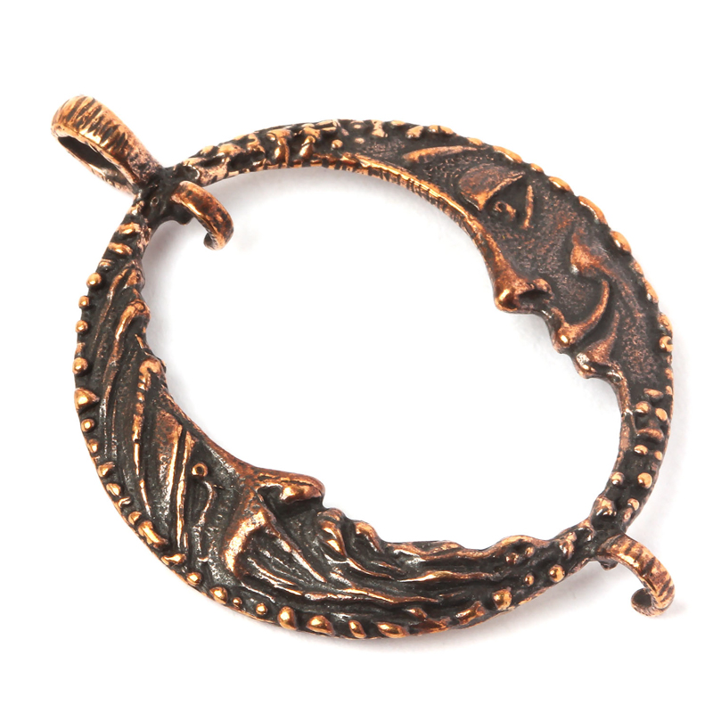Авторская фурнитура Анны Черных - подвеска односторонняя с крупной петлей и двумя дополнительными незапянными колечками. Размер декоративного элемента: 34,8 х 35,8 мм, отверстие (без учета кольца): 17,8 х 30,6 мм, общая высота: 47 мм, петля: 3,4 х 4,8 мм, колечки примерно 2 и 3 мм. Материал: античная бронза. Производство: Россия. Цена указана за 1 шт.
