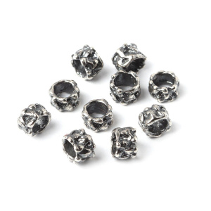 Авторская фурнитура Анны Черных - бусина-шарм. Может использоваться в качестве разделителя или коннектора. Размер: от 4,3 х 6,5 мм до 4,8 х 6,5, отверстие: 4 мм. Бусины могут незначительно отличаться по форме. Материал: латунь, покрытие: античное серебро. Производство: Россия. Цена указана за 1 шт.