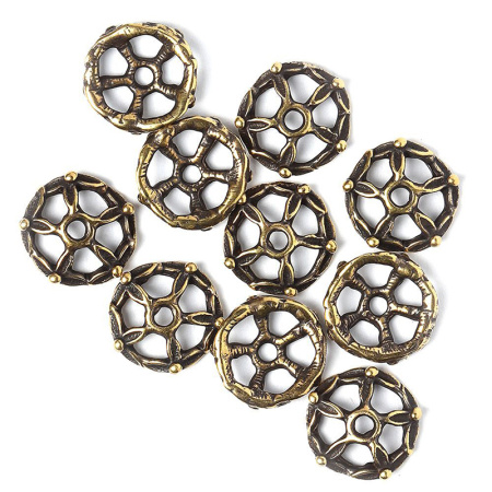 Авторская фурнитура Анны Черных - чашечка. Размер: 11,6 х 2,5 мм, отверстие: 1,7 мм, внутренний диаметр примерно 8 мм. Материал: античная латунь. Производство: Россия. Цена указана за 1 шт.