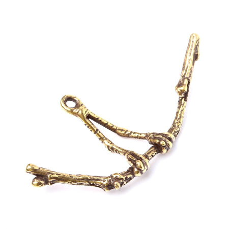Авторская фурнитура Анны Черных - подвеска в форме птичьих лапок на ветке. Размер: 40,3 х 18,2 х 3,5 мм, расстояние между лапками примерно 3,4 мм, отверстие петли: 1,3 мм. Материал: античная латунь. Производство: Россия. Цена указана за 1 шт.