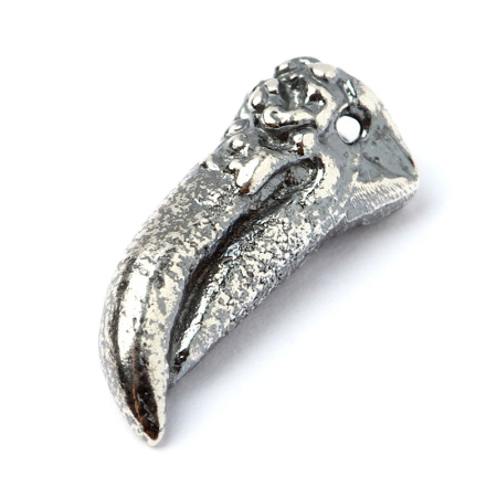 Авторская фурнитура Анны Черных - двусторонний центральный элемент (клюв грифа). Размер: 16,5 х 7,9 мм, толщина в самом широком месте: 5,8 мм, торцевое отверстие примерно 2,6 х 3,5 мм, отверстия: 0,9 мм. Материал: латунь, покрытие: античное серебро. Производство: Россия. Цена указана за 1 шт.