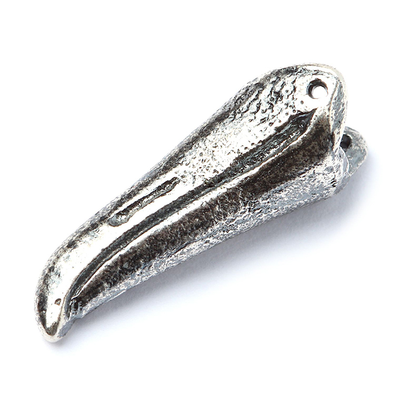 Авторская фурнитура Анны Черных - двусторонний центральный элемент (клюв морской птицы - чайка, альбатрос, пингвин). Размер: 23,6 х 8,1 мм, толщина в самом широком месте: 9,4 мм, торцевое отверстие примерно 5,5 х 4,9 мм, отверстия: 0,7 мм. Материал: латунь, покрытие: античное серебро. Производство: Россия. Цена указана за 1 шт.