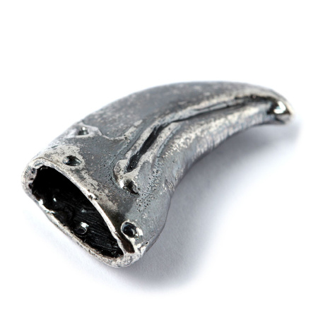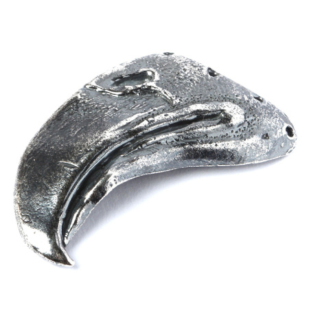 Авторская фурнитура Анны Черных - двусторонний центральный элемент (клюв хищной птицы, орла или коршуна). Размер: 34 х 17,6 мм, толщина в самом широком месте: 8,7 мм, торцевое отверстие примерно 5,9 х 14,7 мм, отверстия примерно 1 мм. Материал: латунь, покрытие: античное серебро. Производство: Россия. Цена указана за 1 шт.