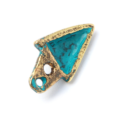 Авторская фурнитура Анны Черных - миниатюрный центральный элемент (клюв петуха или снегиря). Размер: 11,2 х 6,1 мм, толщина: 2,7 мм, отверстия петли: 0,8 мм и 1 мм. Материал: латунь, покрытие: цветная патина. Производство: Россия. Цена указана за 1 шт.