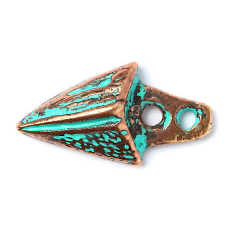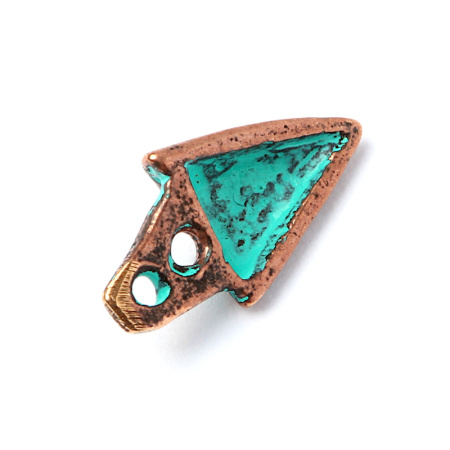 Авторская фурнитура Анны Черных - миниатюрный центральный элемент (клюв петуха или снегиря). Размер: 11,2 х 6,1 мм, толщина: 2,7 мм, отверстия петли: 0,8 мм и 1 мм. Материал: бронза, покрытие: цветная патина. Производство: Россия. Цена указана за 1 шт.