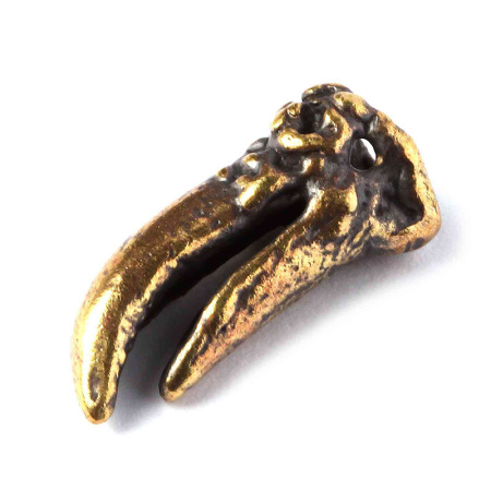 Авторская фурнитура Анны Черных - двусторонний центральный элемент в форме птичьего клюва. Размер: 16,4 х 7,7 мм, толщина в самом широком месте: 5,6 мм, торцевое отверстие примерно 2,5 х 4,5 мм, отверстия примерно 0,8 мм. Материал: античная латунь. Производство: Россия. Цена указана за 1 шт.