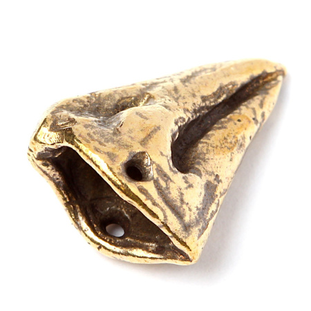 Авторская фурнитура Анны Черных - двусторонний центральный элемент (клюв щегла или дубоноса). Размер: 12,7 х 10,2 мм, толщина в самом широком месте: 6,2 мм, торцевое отверстие примерно 4,1 х 5,9 мм, отверстия: 0,5 мм. Материал: античная латунь. Производство: Россия. Цена указана за 1 шт.