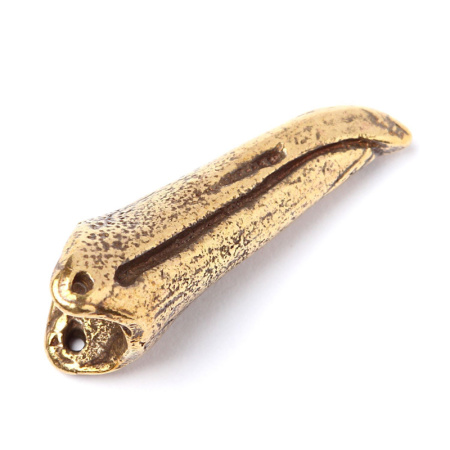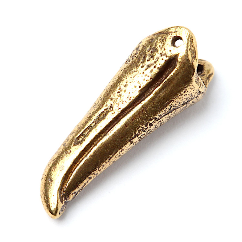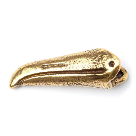 Авторская фурнитура Анны Черных - двусторонний центральный элемент (клюв морской птицы - чайка, альбатрос, пингвин). Размер: 23,6 х 8,1 мм, толщина в самом широком месте: 9,4 мм, торцевое отверстие примерно 5,5 х 4,9 мм, отверстия: 0,7 мм. Материал: античная латунь. Производство: Россия. Цена указана за 1 шт.