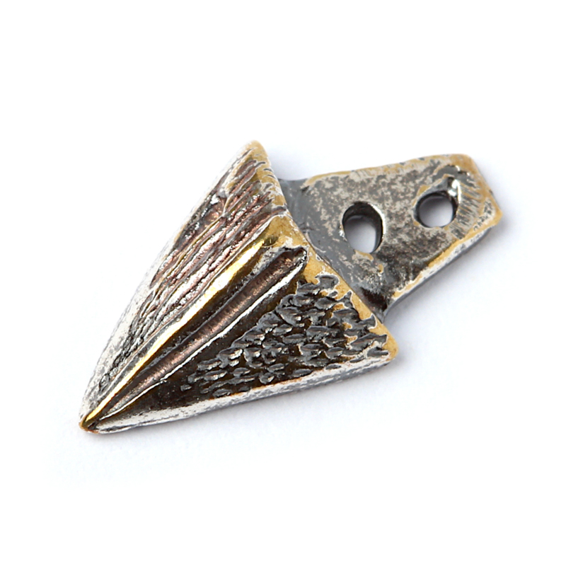 Авторская фурнитура Анны Черных - миниатюрный центральный элемент (клюв петуха или снегиря). Размер: 11,2 х 6,1 мм, толщина: 2,7 мм, отверстия петли: 0,8 мм и 1 мм. Материал: латунь, покрытие: винтаж (серебро). Производство: Россия. Цена указана за 1 шт.