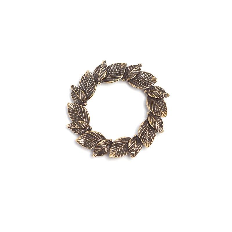 Авторская фурнитура Анны Черных - центральный элемент в виде кольца из листьев. Диаметр: 41,5 мм, внутренний диаметр примерно 25,7 мм, четыре петли на обороте: 4,2 х 2,2 мм. Материал: античная латунь. Производство: Россия. Цена указана за 1 шт.