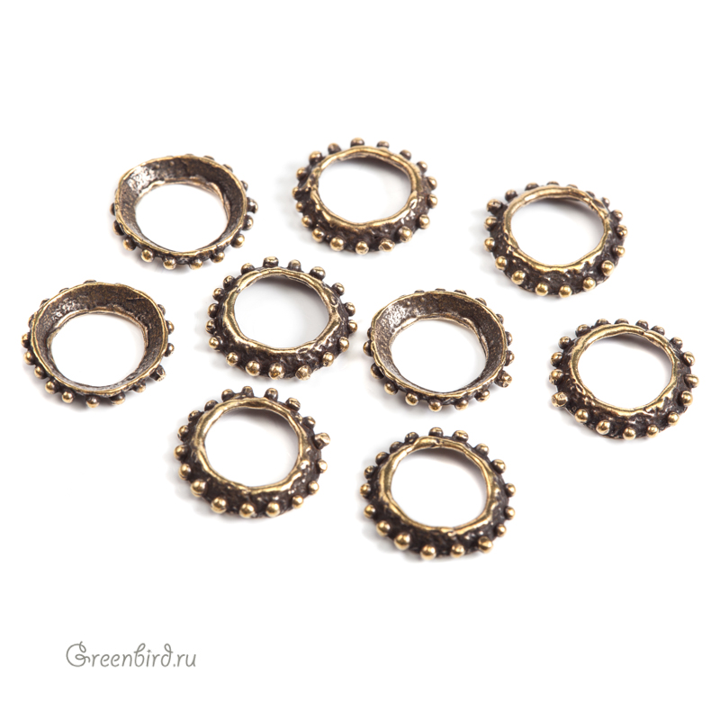 Авторская фурнитура Анны Черных - коннектор в форме фигурного кольца. Диаметр: 13,4 мм, толщина: 2,7 мм, внутренний диаметр примерно 8,1 мм. Материал: античная латунь. Производство: Россия. Цена указана за 1 шт.