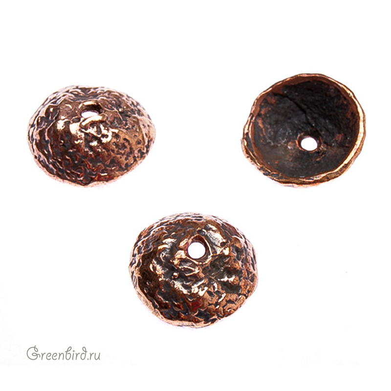 Авторская фурнитура Анны Черных - чашечка. Размер: 11,1 х 10,8 мм, толщина: 4,1 мм, максимальный внутренний диаметр: 9,3 мм, отверстие: 1,8 мм. Материал: античная бронза. Производство: Россия. Цена указана за 1 шт.