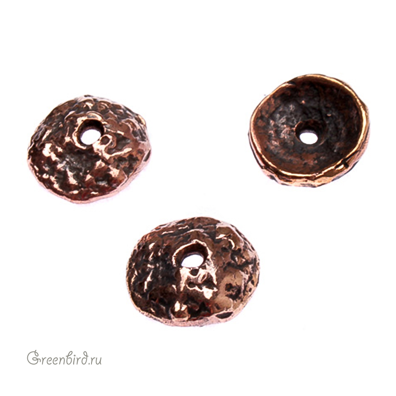 Авторская фурнитура Анны Черных - чашечка. Размер: 8,9 х 9,3 мм, толщина: 3 мм, максимальный внутренний диаметр: 7 мм, отверстие: 1,6 мм. Материал: античная бронза. Производство: Россия. Цена указана за 1 шт.