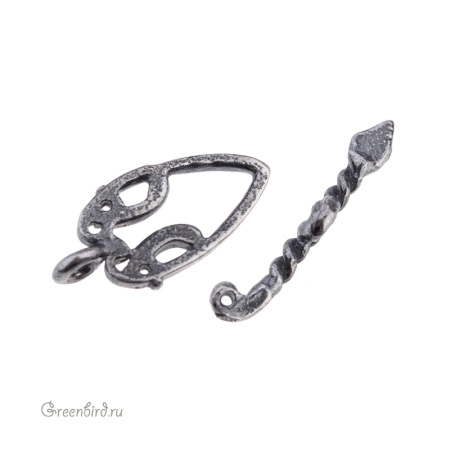 Авторская фурнитура Анны Черных - замок-тоггл. Размер: 8,2 х 16,5 мм, внутренний размер: 4,9 х 10,4 мм (ширина в узкой части примерно 1,2 мм), колечко: 1,7 мм; тоггл-элемент (палочка): 3,8 х 19,7 мм, колечко примерно 1,3 мм. Материал: латунь, покрытие: античное серебро. Производство: Россия. Цена указана за 1 шт.