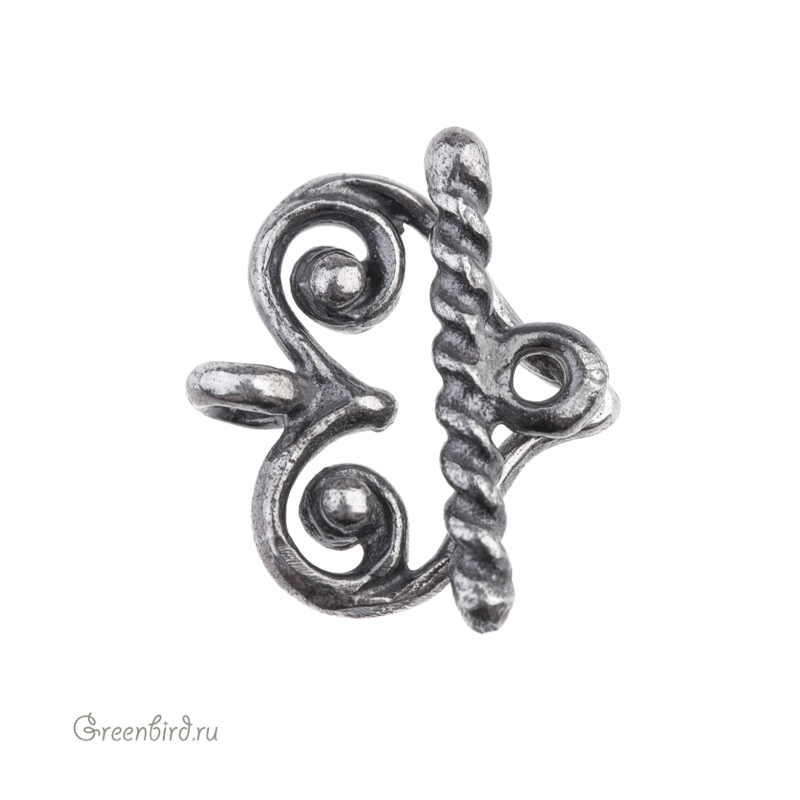 Авторская фурнитура Анны Черных - замок-тоггл. Размер: 13,7 х 13,1 мм, внутренний размер: 9,4 х 4,8 мм, колечко: 1,6 мм; тоггл-элемент (палочка): 2 х 15,3 мм, колечко: 1,3 мм. Материал: латунь, покрытие: античное серебро. Производство: Россия. Цена указана за 1 шт.