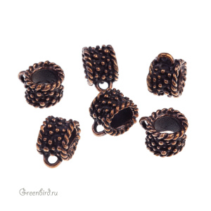 Авторская фурнитура Анны Черных - бейл с широким отверстием. Размер: 10,7 х 8 мм, высота с колечком: 13,2 мм, отверстие: 6,5 мм, колечко примерно 1,9 мм. Материал: античная бронза. Производство: Россия. Цена указана за 1 шт.