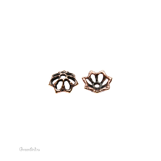 Авторская фурнитура Анны Черных - чашечка. Размер: 11,2 х 11,3 мм, высота: 3,4 мм, отверстия: 1,8 мм (центральное) и 2,9 х 1,6 мм, внутренний размер примерно 9 мм. Материал: античная бронза. Производство: Россия. Цена указана за 1 шт.