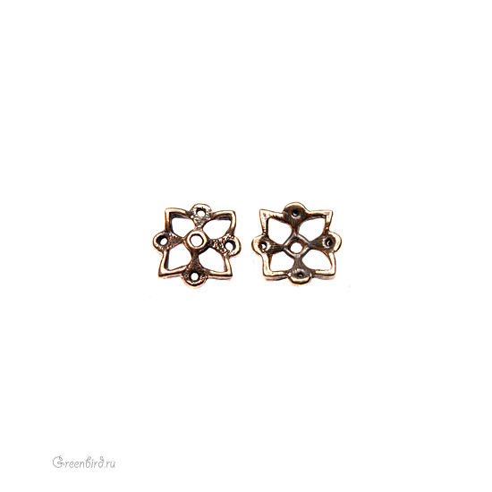 Авторская фурнитура Анны Черных - чашечка-коннектор. Размер: 10,7 х 10,4 мм, высота: 2,6 мм, центральное отверстие: 1 мм, внутренний размер примерно 8 х 8 мм. Материал: античная бронза. Производство: Россия. Цена указана за 1 шт.