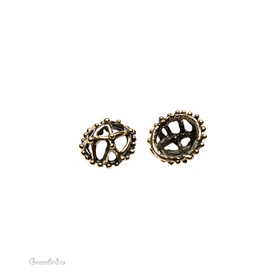 Авторская фурнитура Анны Черных - чашечка-коннектор. Размер: 14,9 х 15,3 мм, высота: 7,5 мм, отверстия: от 1,5 х 2 мм до 3,1 х 4,1 мм, внутренний диаметр примерно 10 мм. Материал: античная латунь. Производство: Россия. Цена указана за 1 шт.