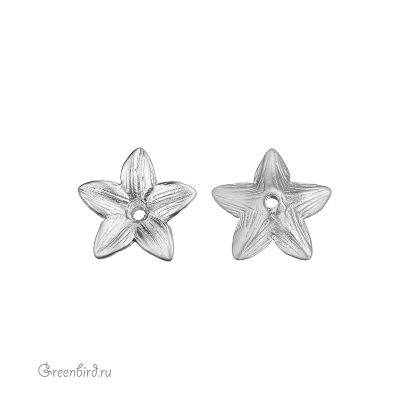 Фурнитура для бижутерии - шапочка для бусин и шнуров. Подходит для крупных бусин. Материал: латунь, покрытие: матовый родий. Размер: 10 х 10,4 х 3,1 мм, максимальный внутренний диаметр: 9,5 мм, диаметр отверстия: 0,7 мм. Производство: Корея. Цена указана за 1 шт.