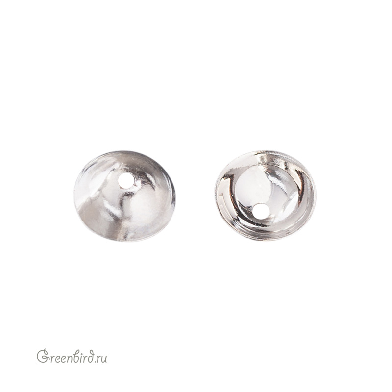 Фурнитура для бижутерии - шапочка для бус и шнуров гладкая. Материал: латунь, покрытие: родий. Диаметр: 7,95-8,0 мм, высота: 2,4 мм, отверстие: 1,2 мм. Подходит для бусин диаметром 6,8-7 мм. Производство: Китай. Цена указана за 1 шт.