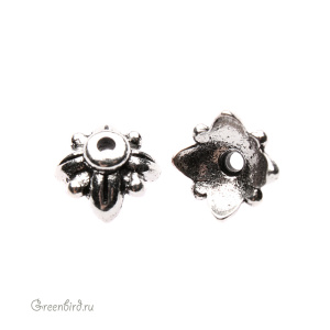 Фурнитура для бижутерии - чашечка для бусины. Цвет: античное серебро. Размер: 7,5 мм, отверстие: 1 мм; подходит для бусин 7-9 мм. Цена указана за 1 шт.