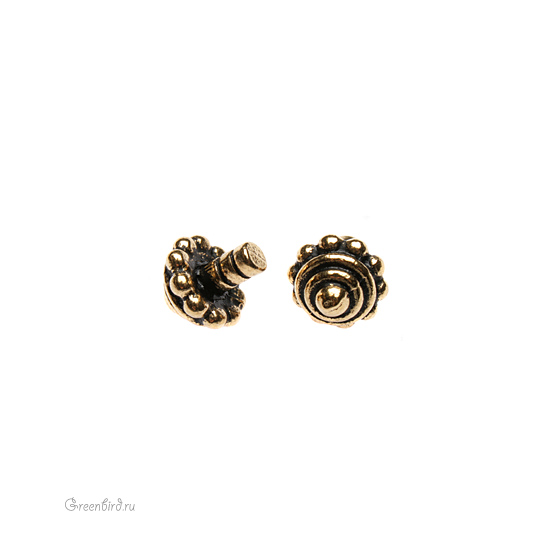 Фурнитура для бижутерии - чашечка для вклеивания. Цвет: античное золото. Размер: 9 х 7 мм, штырек: 2,2 мм. Цена указана за 1 шт.