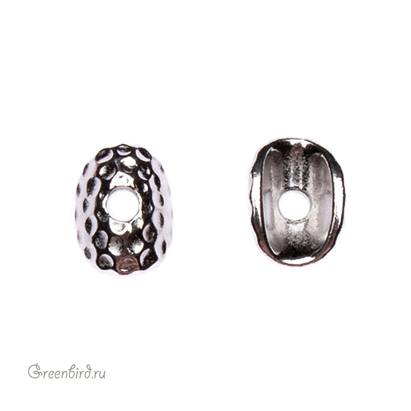 Фурнитура для бижутерии - чашечка для бусины. Цвет: родий. Размер: 11 х 8 мм. Цена указана за 1 шт.