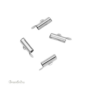 Фурнитура для бижутерии - концевик для бисерного полотна, стразовой цепочки. Идеально подходит для завершения изделий, сплетенных из японского бисера Delica 11/0. В ширину концевика помещается 8 цилиндрических бисерин . Материал: латунь, покрытие: родий. Размер: 14 х 5 мм, петелька: 1,3 х 3 мм. Производство: Китай. Цена указана за 1 штуку.