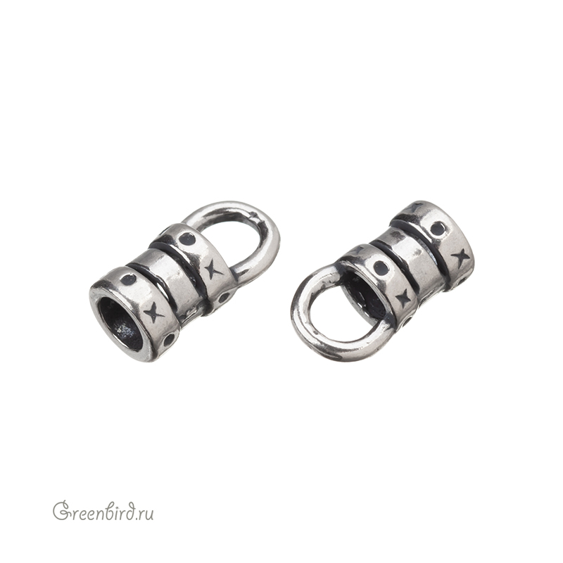 Наконечник-кримп - концевик для шнура, размер: 11,2 х 5,4 х 5,8 мм; отверстие: 3,3 мм. Цвет: античное серебро. Производство: Израиль. Цена указана за 1 штуку.