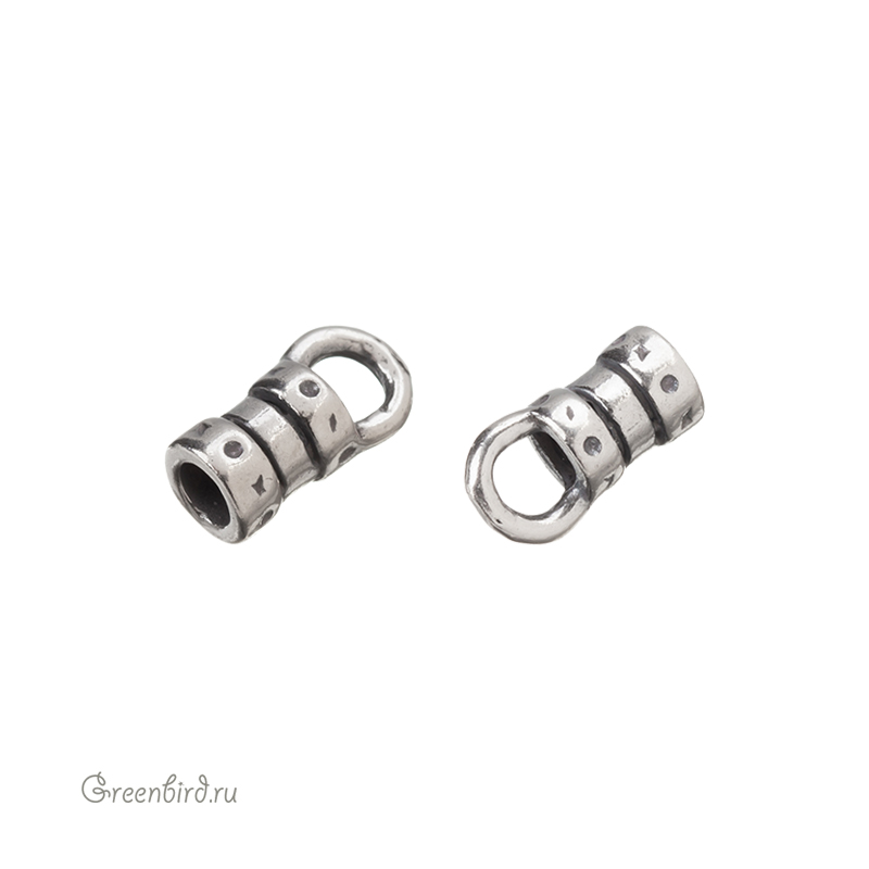Наконечник-кримп - концевик для шнура, размер: 10 х 4,4 мм; отверстие: 2,5 мм. Цвет: античное серебро. Производство: Израиль. Цена указана за 1 штуку.