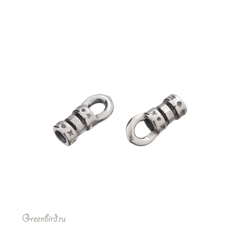 Наконечник-кримп - концевик для шнура, размер: 9,2 х 3,5 мм; отверстие: 2 мм. Цвет: античное серебро. Производство: Израиль. Цена указана за 1 штуку.