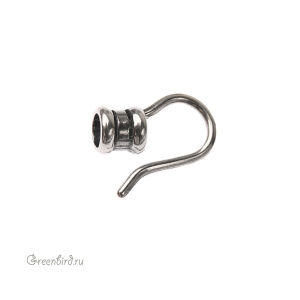 Наконечник-кримп с крючком - концевик для шнура, материал: латунь, цвет: античное серебро, размер: 15 х 5 мм; отверстие: 3,6 мм. Производство: Израиль. Цена указана за 1 шт.