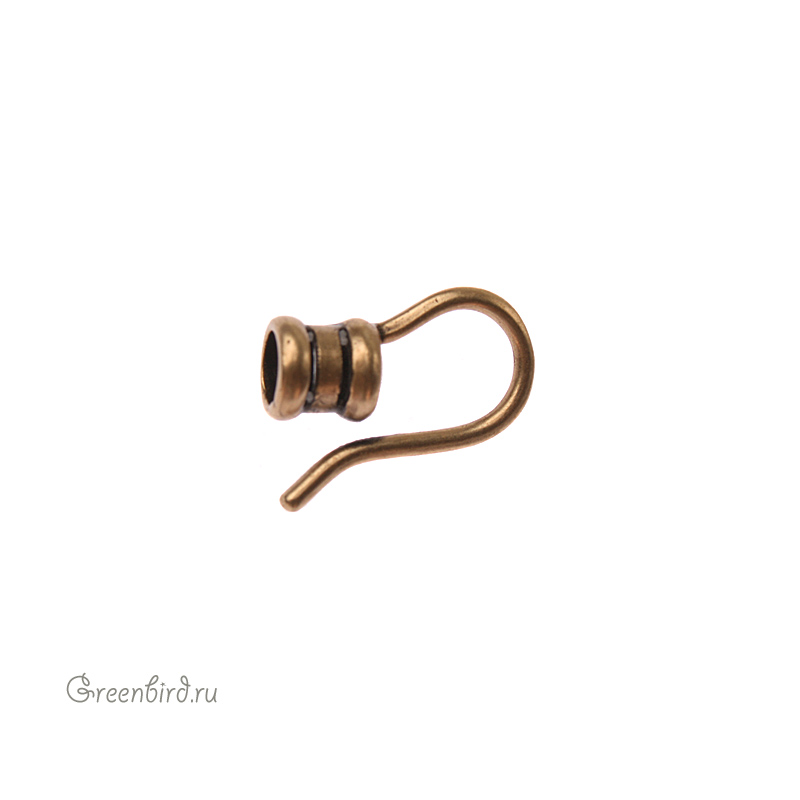Наконечник-кримп с крючком - концевик для шнура, материал: латунь, цвет: античная латунь, размер: 15 х 5 мм; отверстие: 3,6 мм. Производство: Израиль. Цена указана за 1 шт.