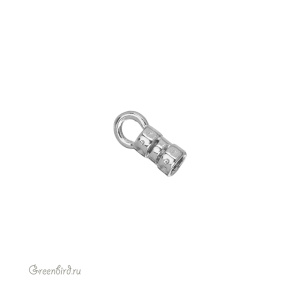 Концевик-кримп с колечком - зажимной наконечник для шнура. Внешний размер с колечком: 9,2 х 3 мм; отверстие: 2 мм, внутренний размер колечка: 2,5 мм. Материал: латунь, покрытие: родий. Производство: Китай. Цена указана за 1 штуку.