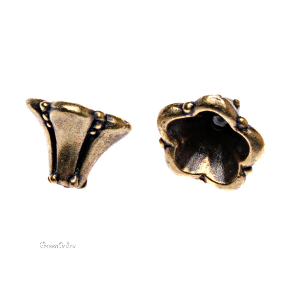 Фурнитура для бижутерии - концевик-конус. Цвет: античная латунь. Высота: 9 мм, диаметр: 12 мм. Цена указана за 1 шт.