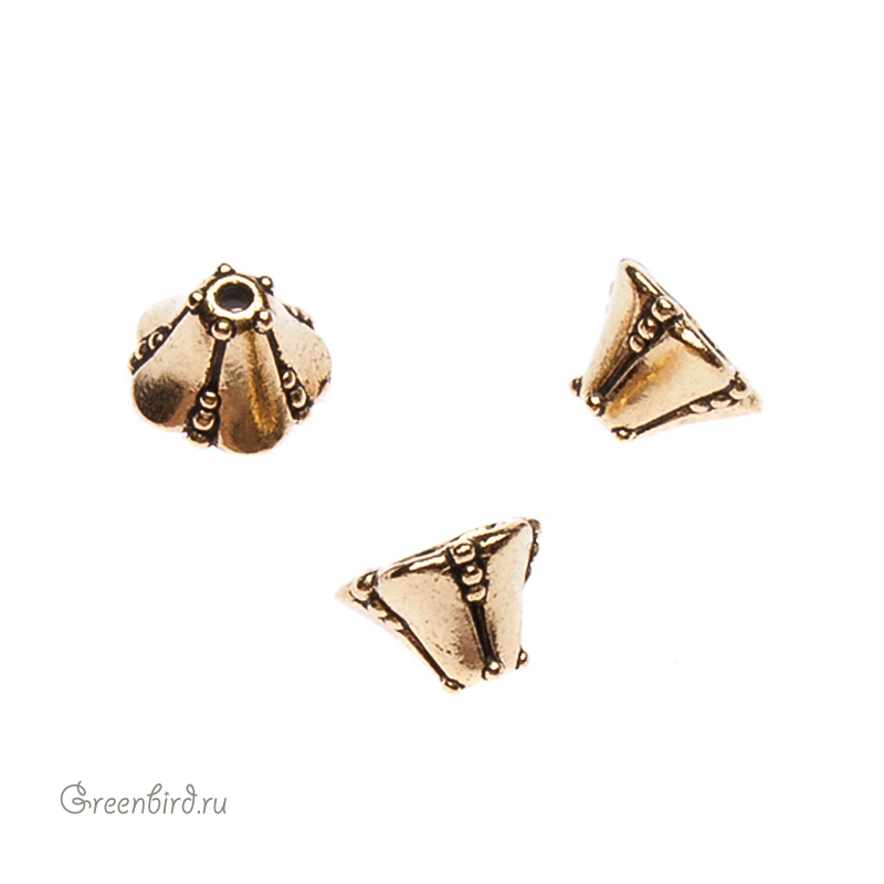 Фурнитура для бижутерии - концевик-конус. Цвет: античное золото. Высота: 6 мм, диаметр: 10 мм. Цена указана за 1 шт.
