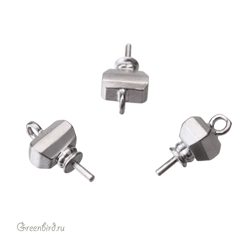 Фурнитура для бижутерии - компонент для вклеивания полупросверленного жемчуга. Материал: латунь, покрытие: матовый родий. Размер декоративного элемента: 5,7 х 3,3 х 5,3 мм, длина штырька: 3 мм, толщина штырька: 0,85 мм. Подходит для жемчуга 6, 8 и 10 мм. Производство: Корея. Цена указана за 1 штуку.